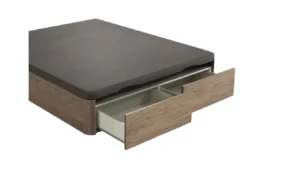 OFRECE LA VERSATILIDAD DE SUS CINCO ACABADOS DE MADERA,SOBRE UNA ESTRUCTURA FIRME Y SIN PATAS, DIRECTAMENTE A SUELO, PARA LOGRAR LA MÁXIMA CAPACIDAD INTERIOR POSIBLE. CON TEJIDO ANTIDESLIZANTE EN LA TAPA, QUE IMPIDE QUE EL COLCHÓN SE DESPLACE CUANDO SE ABRE EL COFRE.